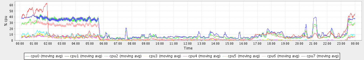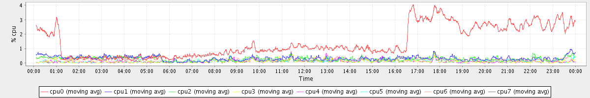 avg(cpu0) = 1.43 avg(cpu1) = 0.31 avg(cpu2) = 0.27 avg(cpu3) = 0.11 avg(cpu4) = 0.12 avg(cpu5) = 0.11 avg(cpu6) = 0.23 avg(cpu7) = 0.10