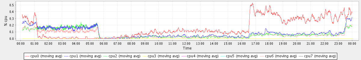 avg(cpu0) = 0.16 avg(cpu1) = 0.08 avg(cpu2) = 0.07 avg(cpu3) = 0.00 avg(cpu4) = 0.00 avg(cpu5) = 0.00 avg(cpu6) = 0.05 avg(cpu7) = 0.00