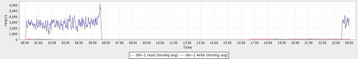 avg(dm-1 read) = 3154.82 avg(dm-1 write) = 2927.44