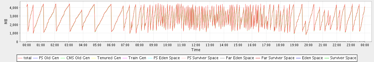 avg(total) = 2799.65 avg(PS Old Gen) = 0.00 avg(CMS Old Gen) = 2779.31 avg(Tenured Gen) = 0.00 avg(Train Gen) = 0.00 avg(PS Eden Space) = 0.00 avg(PS Survivor Space) = 0.00 avg(Par Eden Space) = 20.34 avg(Par Survivor Space) = 0.00 avg(Eden Space) = 0.00 avg(Survivor Space) = 0.00
