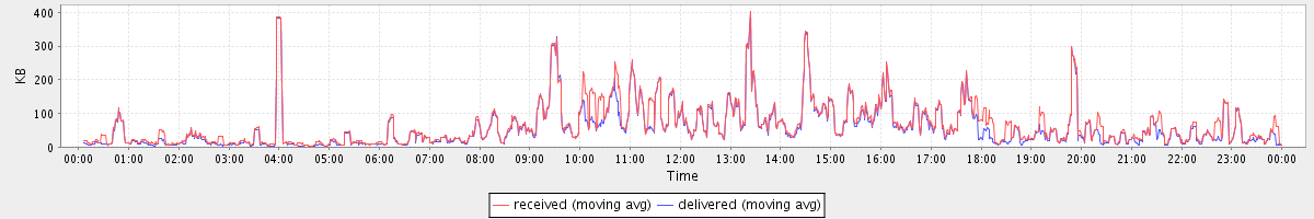 avg(received msgs) = 0.95 avg(delivered msgs) = 0.87 avg(received x rcpts) = 0.95