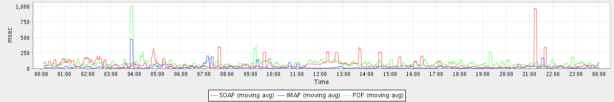 Host zm02.stanford.edu: Mailboxd: Response Time by Client Protocol