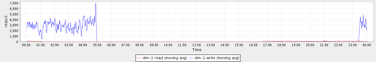 avg(dm-1 read) = 2869.92 avg(dm-1 write) = 2718.10