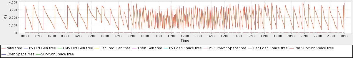 avg(total free) = 1978.63 avg(PS Old Gen free) = 0.00 avg(CMS Old Gen free) = 1957.19 avg(Tenured Gen free) = 0.00 avg(Train Gen free) = 0.00 avg(PS Eden Space free) = 0.00 avg(PS Survivor Space free) = 0.00 avg(Par Eden Space free) = 21.37 avg(Par Survivor Space free) = 0.06 avg(Eden Space free) = 0.00 avg(Survivor Space free) = 0.00