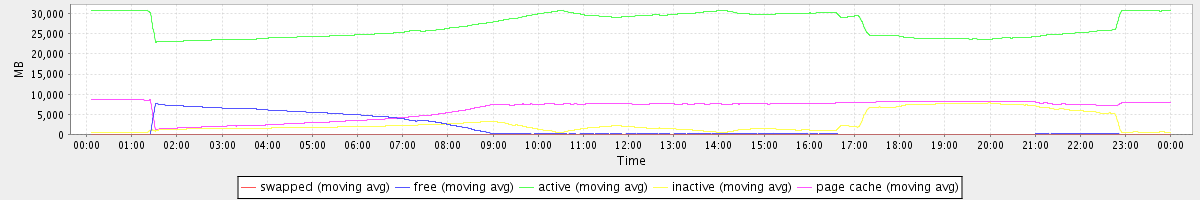avg(swapped) = 0.25 avg(free) = 1622.84 avg(active) = 27056.01 avg(inactive) = 2775.76 avg(page cache) = 6435.91