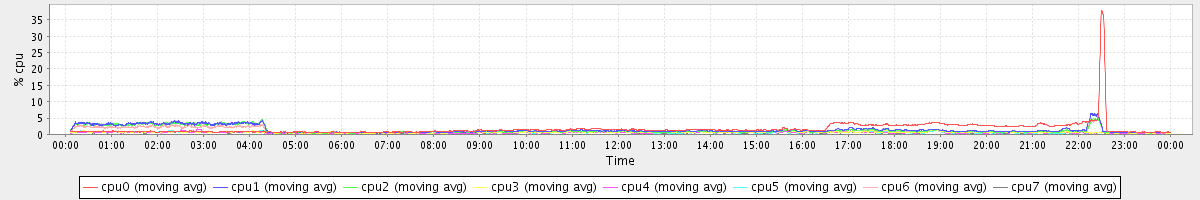 avg(cpu0) = 1.08 avg(cpu1) = 0.21 avg(cpu2) = 0.20 avg(cpu3) = 0.07 avg(cpu4) = 0.05 avg(cpu5) = 0.05 avg(cpu6) = 0.13 avg(cpu7) = 0.06