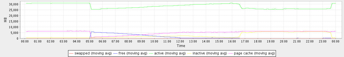 avg(swapped) = 0.25 avg(free) = 996.46 avg(active) = 28105.07 avg(inactive) = 2430.87 avg(page cache) = 5091.86