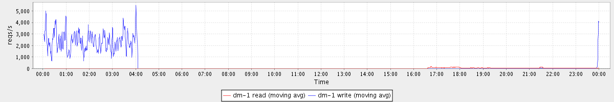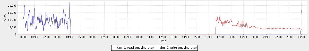 avg(dm-1 read) = 17.15 avg(dm-1 write) = 411.73