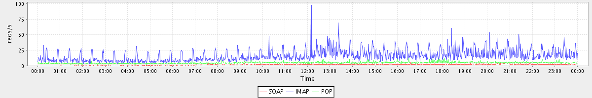 Host zm05.stanford.edu: Mailboxd: Request Rate by Client Protocol