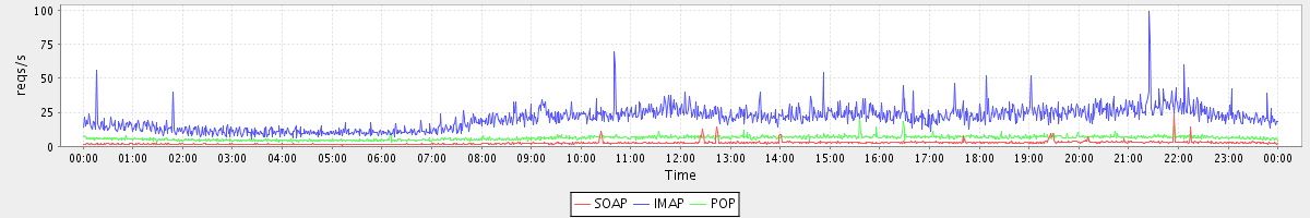 Host zm09.stanford.edu: Mailboxd: Request Rate by Client Protocol
