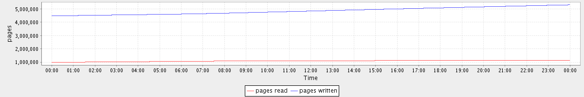 avg(pages read) = 1085455.53 avg(pages written) = 4857404.60