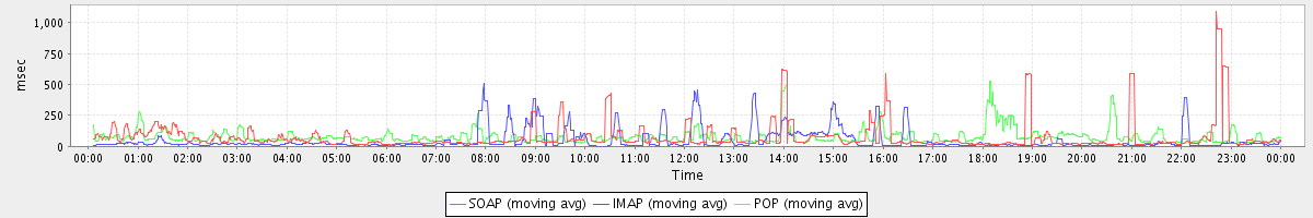 avg(IMAP) = 5.75 avg(IMAP SSL) = 671.46 avg(POP) = 0.16 avg(POP SSL) = 8.94