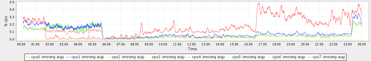 avg(cpu0) = 0.16 avg(cpu1) = 0.09 avg(cpu2) = 0.07 avg(cpu3) = 0.00 avg(cpu4) = 0.00 avg(cpu5) = 0.00 avg(cpu6) = 0.05 avg(cpu7) = 0.00