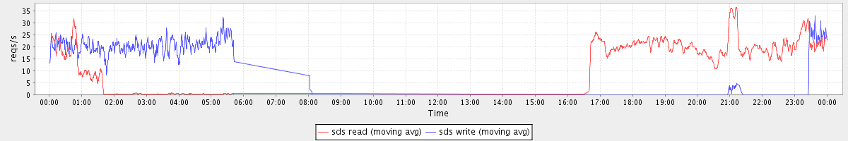 avg(sda read) = 25.76 avg(sda write) = 55.23
