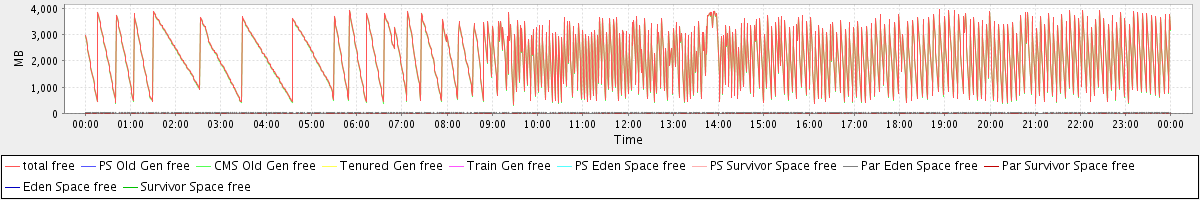 avg(total free) = 2163.58 avg(PS Old Gen free) = 0.00 avg(CMS Old Gen free) = 2142.07 avg(Tenured Gen free) = 0.00 avg(Train Gen free) = 0.00 avg(PS Eden Space free) = 0.00 avg(PS Survivor Space free) = 0.00 avg(Par Eden Space free) = 21.44 avg(Par Survivor Space free) = 0.06 avg(Eden Space free) = 0.00 avg(Survivor Space free) = 0.00