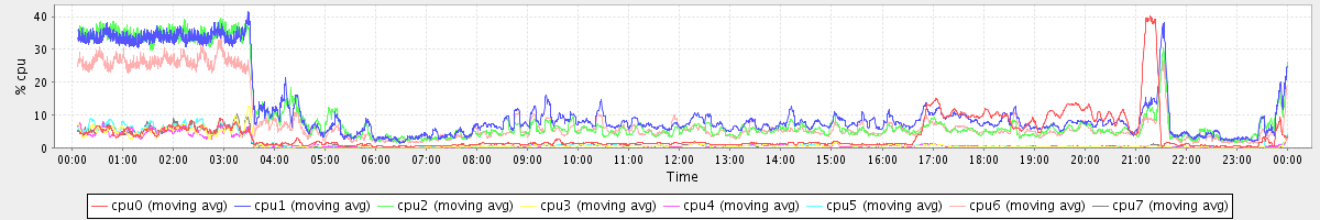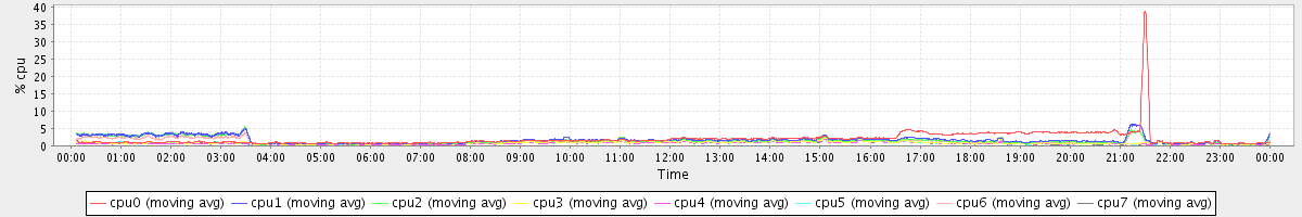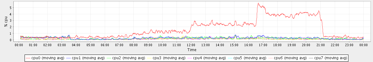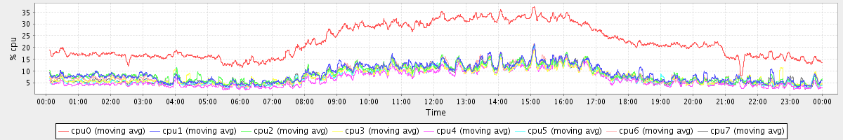 avg(cpu0) = 1.62 avg(cpu1) = 0.26 avg(cpu2) = 0.24 avg(cpu3) = 0.12 avg(cpu4) = 0.09 avg(cpu5) = 0.11 avg(cpu6) = 0.20 avg(cpu7) = 0.11