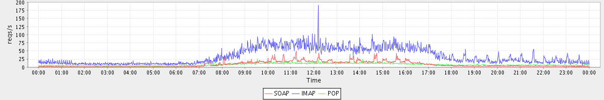 Host zm05.stanford.edu: Mailboxd: Request Rate by Client Protocol