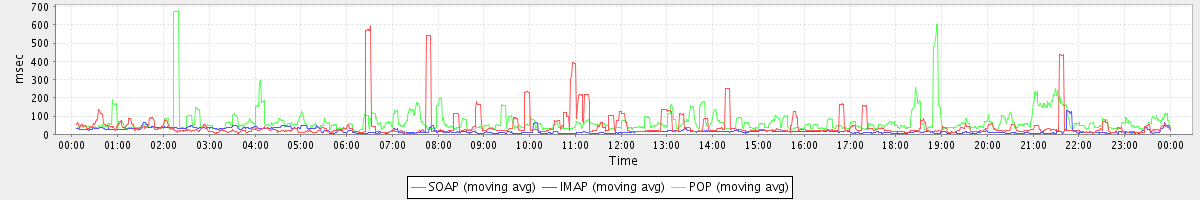Host zm05.stanford.edu: Mailboxd: Response Time by Client Protocol