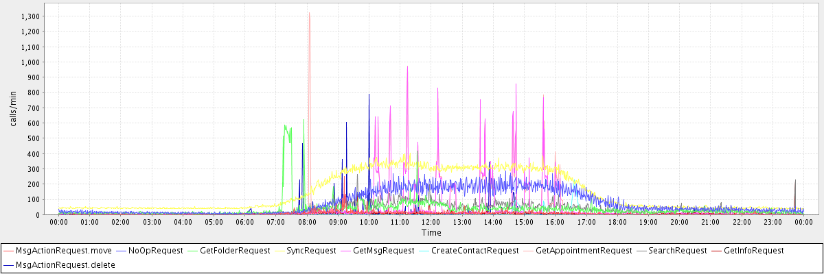 max(MsgActionRequest.move) = 252.00 max(NoOpRequest) = 285.00 max(GetFolderRequest) = 621.00 max(SyncRequest) = 403.00 max(GetMsgRequest) = 968.00 max(CreateContactRequest) = 229.00 max(GetAppointmentRequest) = 1322.00 max(SearchRequest) = 264.00 max(GetInfoRequest) = 221.00 max(MsgActionRequest.delete) = 791.00