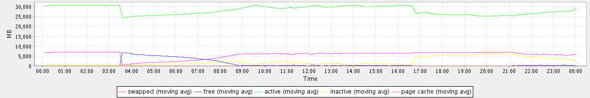 avg(swapped) = 0.25 avg(free) = 993.71 avg(active) = 28261.65 avg(inactive) = 2209.12 avg(page cache) = 5603.27