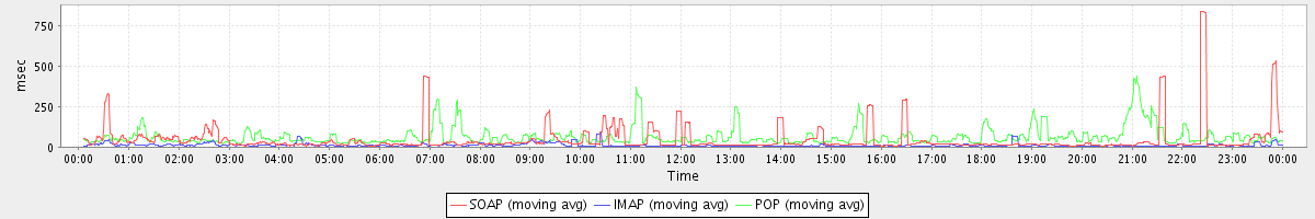 Host zm05.stanford.edu: Mailboxd: Response Time by Client Protocol