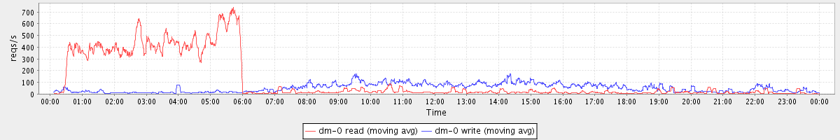 avg(dm-0 read) = 2213.23 avg(dm-0 write) = 207.65