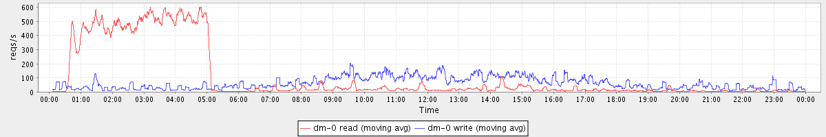 avg(dm-0 read) = 2078.18 avg(dm-0 write) = 252.93
