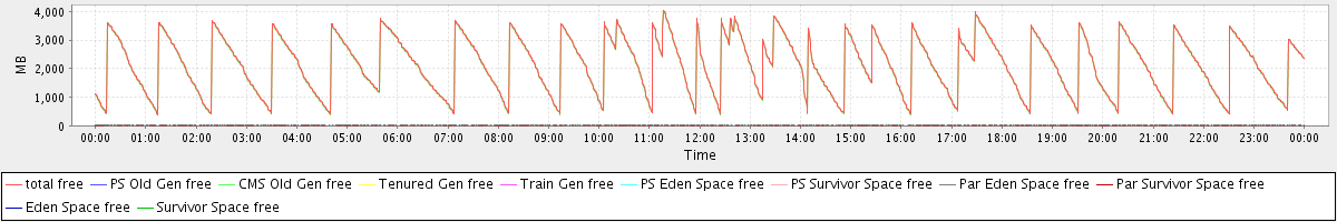 avg(total free) = 2130.48 avg(PS Old Gen free) = 0.00 avg(CMS Old Gen free) = 2109.38 avg(Tenured Gen free) = 0.00 avg(Train Gen free) = 0.00 avg(PS Eden Space free) = 0.00 avg(PS Survivor Space free) = 0.00 avg(Par Eden Space free) = 21.03 avg(Par Survivor Space free) = 0.06 avg(Eden Space free) = 0.00 avg(Survivor Space free) = 0.00