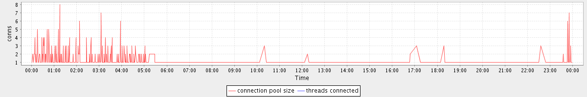 avg(connection pool size) = 0.46 avg(threads connected) = 0.00