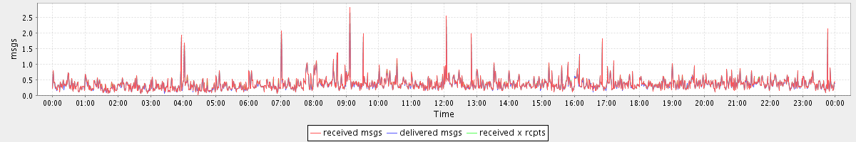 avg(received msgs) = 0.37 avg(delivered msgs) = 0.36 avg(received x rcpts) = 0.37
