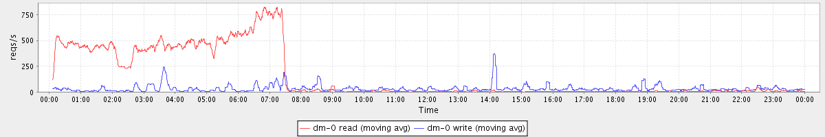 avg(dm-1 read) = 42.29 avg(dm-1 write) = 856.89