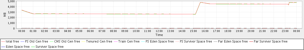 avg(total free) = 3337.09 avg(PS Old Gen free) = 0.00 avg(CMS Old Gen free) = 3316.44 avg(Tenured Gen free) = 0.00 avg(Train Gen free) = 0.00 avg(PS Eden Space free) = 0.00 avg(PS Survivor Space free) = 0.00 avg(Par Eden Space free) = 20.58 avg(Par Survivor Space free) = 0.06 avg(Eden Space free) = 0.00 avg(Survivor Space free) = 0.00