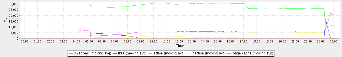 avg(swapped) = 0.27 avg(free) = 725.99 avg(active) = 28290.84 avg(inactive) = 2464.75 avg(page cache) = 6066.12