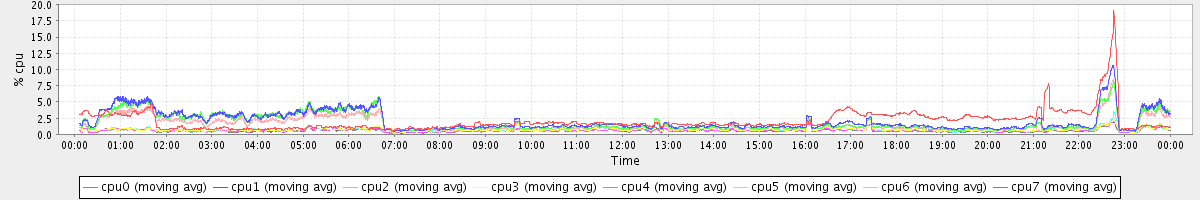 avg(cpu0) = 1.23 avg(cpu1) = 0.28 avg(cpu2) = 0.25 avg(cpu3) = 0.09 avg(cpu4) = 0.07 avg(cpu5) = 0.09 avg(cpu6) = 0.20 avg(cpu7) = 0.08
