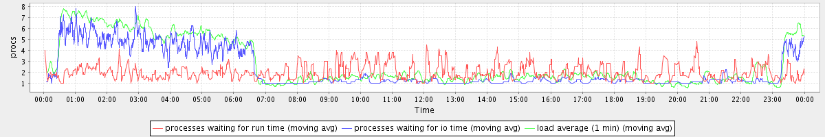 avg(processes waiting for run time) = 0.97 avg(processes waiting for io time) = 1.64 avg(load average (1 min)) = 2.75