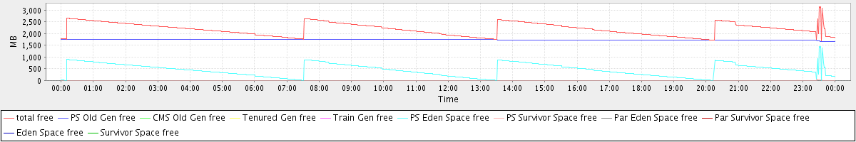 avg(total free) = 2189.72 avg(PS Old Gen free) = 1738.81 avg(CMS Old Gen free) = 0.00 avg(Tenured Gen free) = 0.00 avg(Train Gen free) = 0.00 avg(PS Eden Space free) = 450.72 avg(PS Survivor Space free) = 0.19 avg(Par Eden Space free) = 0.00 avg(Par Survivor Space free) = 0.00 avg(Eden Space free) = 0.00 avg(Survivor Space free) = 0.00