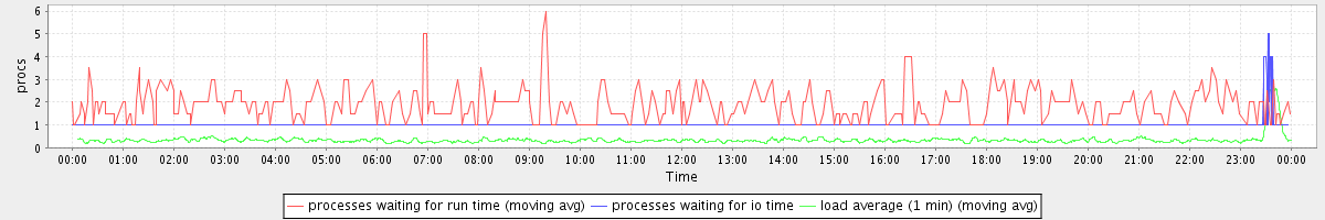 avg(processes waiting for run time) = 0.27 avg(processes waiting for io time) = 0.03 avg(load average (1 min)) = 0.34