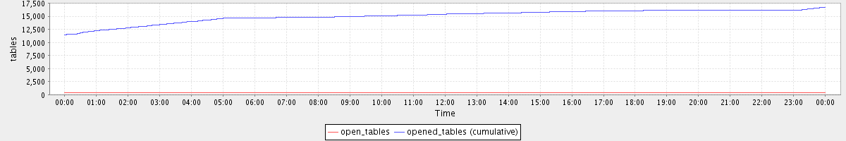 avg(open_tables) = 397.00 avg(opened_tables (cumulative)) = 15075.71