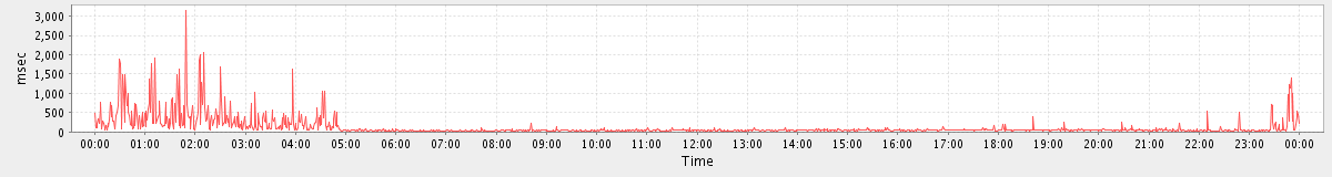 avg(AutoCompleteGalRequest) = 463.79 avg(SyncGalRequest) = 348.03 avg(BrowseRequest) = 656.33 avg(ImportAppointmentsRequest) = 1161.00 avg(DeleteAccountRequest) = 668.00 avg(BackupRequest) = 287313.00 avg(FolderActionRequest.empty) = 4298.13 avg(BackupQueryRequest) = 913.20 avg(GetQuotaUsageRequest) = 3296.00 avg(ConvActionRequest.delete) = 310.57