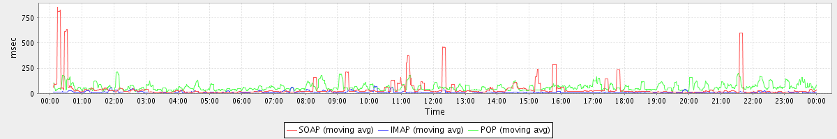 Host zm05.stanford.edu: Mailboxd: Response Time by Client Protocol