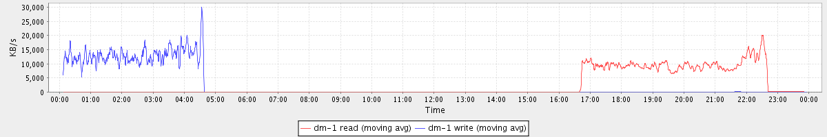 avg(dm-1 read) = 22.87 avg(dm-1 write) = 612.61