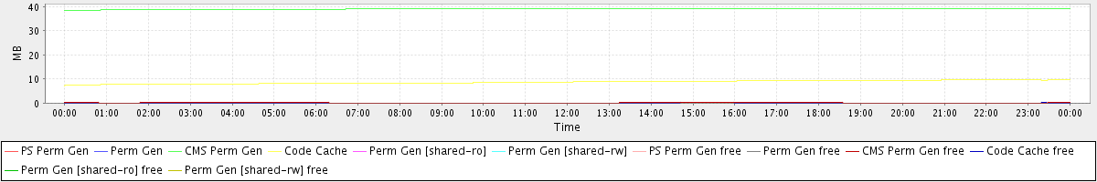 avg(PS Perm Gen) = 0.00 avg(Perm Gen) = 0.00 avg(CMS Perm Gen) = 39.05 avg(Code Cache) = 8.73 avg(Perm Gen [shared-ro]) = 0.00 avg(Perm Gen [shared-rw]) = 0.00 avg(PS Perm Gen free) = 0.00 avg(Perm Gen free) = 0.00 avg(CMS Perm Gen free) = 0.14 avg(Code Cache free) = 0.06 avg(Perm Gen [shared-ro] free) = 0.00 avg(Perm Gen [shared-rw] free) = 0.00
