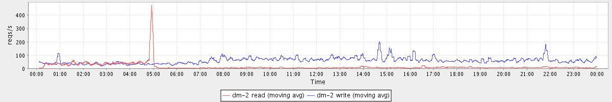 avg(dm-1 read) = 22.64 avg(dm-1 write) = 594.22