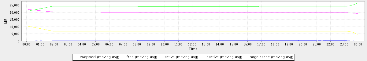 avg(swapped) = 0.25 avg(free) = 306.76 avg(active) = 24018.86 avg(inactive) = 6851.52 avg(page cache) = 19943.70