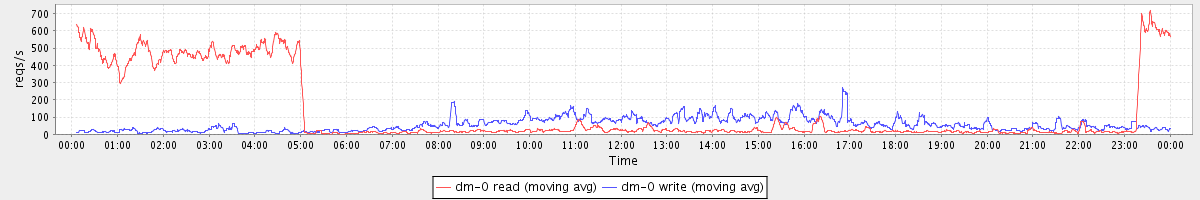 avg(dm-1 read) = 33.78 avg(dm-1 write) = 676.86