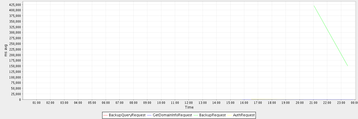 avg(BackupQueryRequest) = 969.00 avg(GetDomainInfoRequest) = 0.17 avg(BackupRequest) = 284666.50 avg(AuthRequest) = 269.00