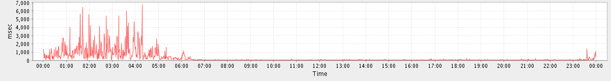 max(AuthRequest) = 487.00 max(MsgActionRequest.move) = 97.00 max(NoOpRequest) = 127.00 max(GetFolderRequest) = 1120.00 max(SyncRequest) = 216.00 max(GetAppointmentRequest) = 80.00 max(GetMiniCalRequest) = 564.00 max(SearchRequest) = 1105.00 max(GetInfoRequest) = 966.00 max(MsgActionRequest.delete) = 1215.00