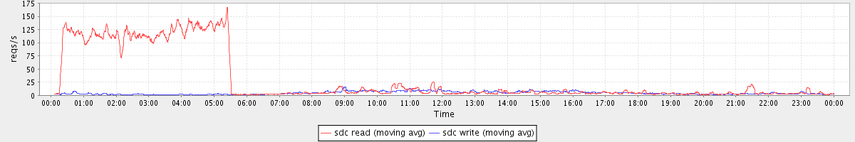 avg(sda2 read) = 0.55 avg(sda2 write) = 6.22