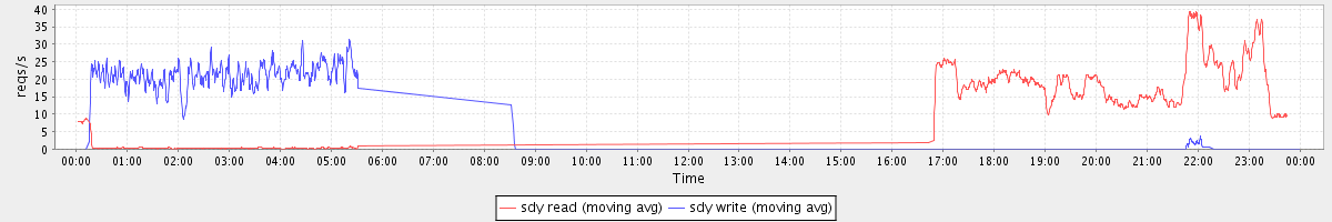 avg(sda1 read) = 23.83 avg(sda1 write) = 41.92