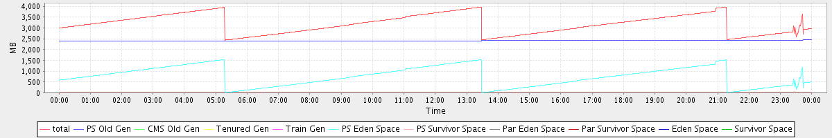 avg(total) = 3178.99 avg(PS Old Gen) = 2403.28 avg(CMS Old Gen) = 0.00 avg(Tenured Gen) = 0.00 avg(Train Gen) = 0.00 avg(PS Eden Space) = 747.08 avg(PS Survivor Space) = 28.63 avg(Par Eden Space) = 0.00 avg(Par Survivor Space) = 0.00 avg(Eden Space) = 0.00 avg(Survivor Space) = 0.00